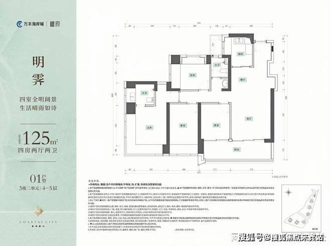 125㎡横厅四房:景观优势,东南朝向,约12米采光面,主卧 L 型飘窗享270°环幕视野,适合对景观有要求的家庭。