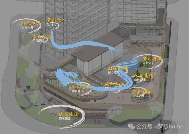 同时,空中花园又巧妙地包裹了泳池,并结合4层架空层,通过抬高设计,雕琢出高定花园会所。
