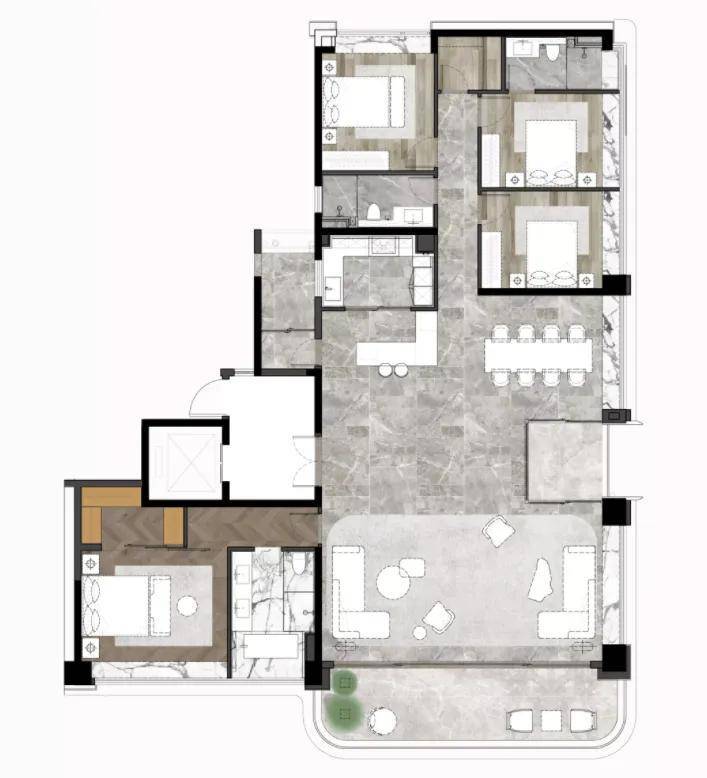 【264方】:南、北朝向,4室2厅3卫,建筑面积264㎡,2000万/套。