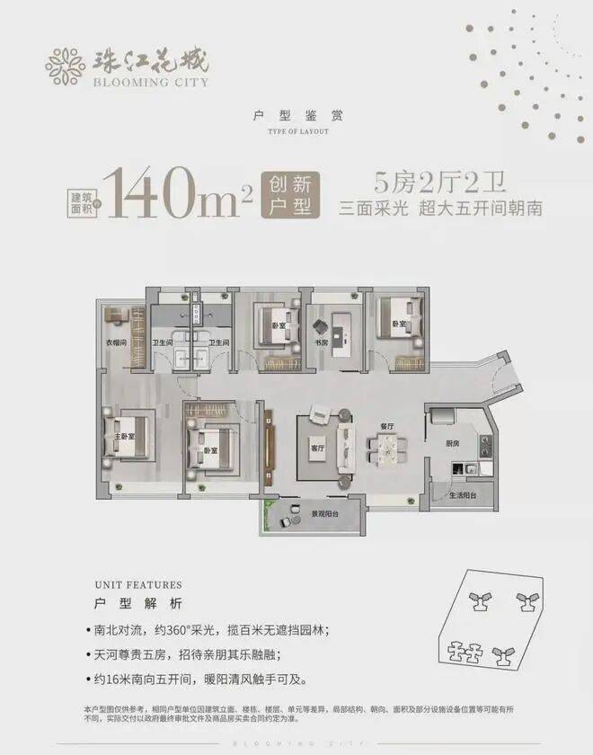 社区内将建4500㎡大型私享公交总站,为版块内最大的社区旗舰型交通配套,项目产品为约70-140㎡“2+1至5房”夺金户型,超87%实用率,比同面积产品多一个房间。