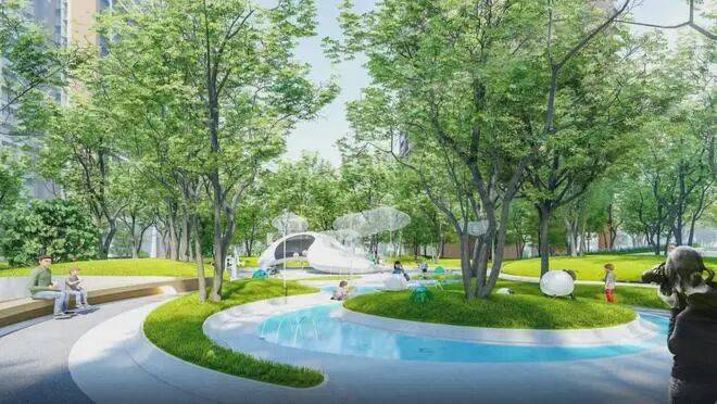 项目拥有约10万㎡社区园林,其中包括5.2万㎡中央花园、近600㎡泳池及超2500㎡全龄游乐园等设施。