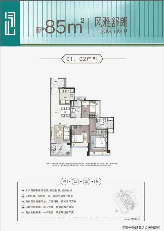 ✔88㎡ 三房两卫:双景观阳台,通风采光佳