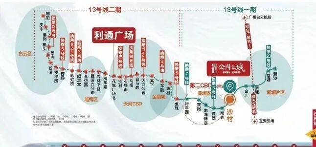 地铁便利:距离在售二期仅约600米处即为13号线沙村站地铁口,步行即可到达。未来,随着13号线二期的开通,居民将能更方便地直达珠江新城(花城广场北站),尽享城市繁华。同时,从小区出发,只需两站即可抵达新塘南站TOD,这一东部核心交通枢纽,十轨交汇,连接白云机场和深圳宝安机场等重要地点。
