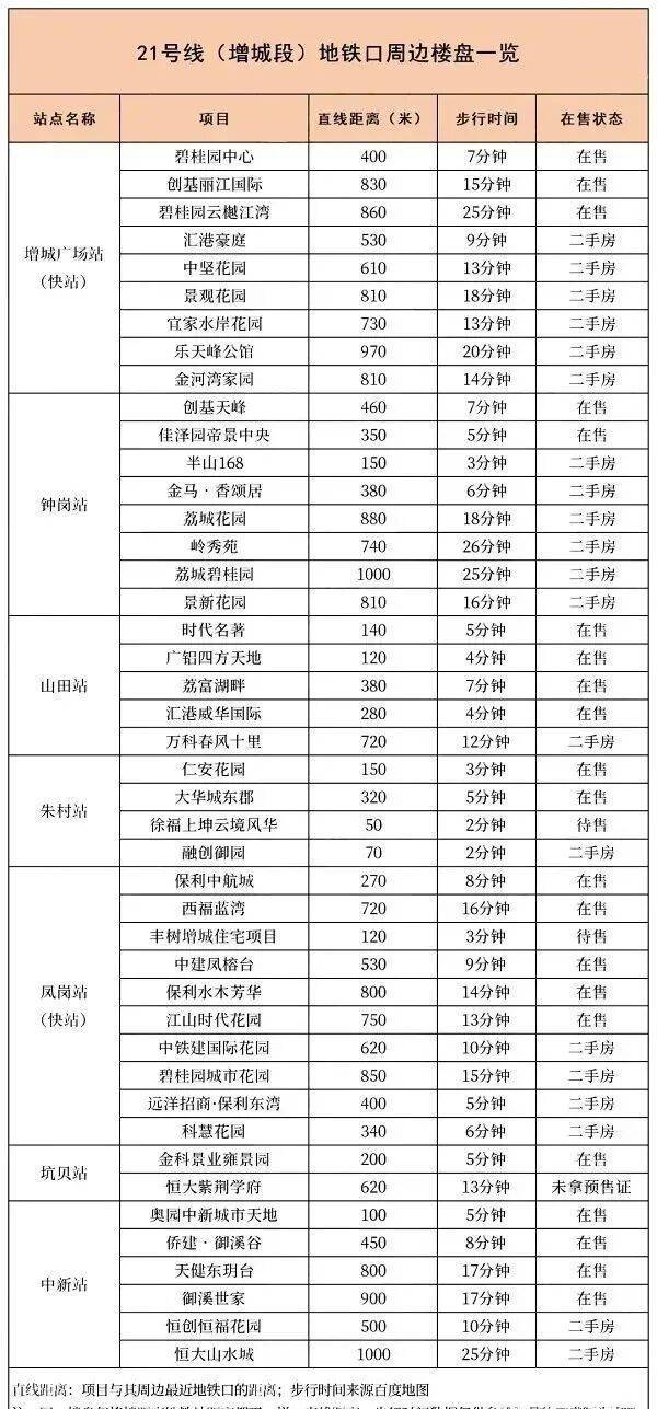 中新站:中新站是黄埔进入增城的第一站,站点周边一手项目较多。其中,奥园中新城市天地距离地铁站较近,据说到时候负一层将通地铁,但目前还没有确切通知。