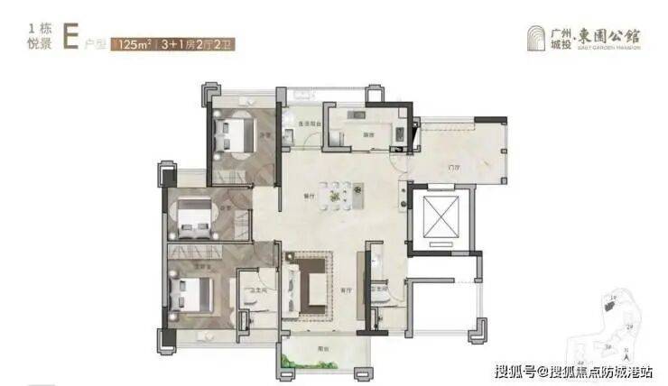 120平3+1房和125平3+1房AB两个户型:分东北、东南、西南向,其中125平竖厅户型为南北对流。