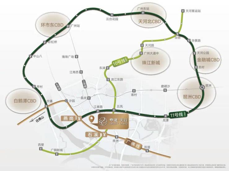 中建天钰坐拥双地铁,位于广佛线燕岗和石溪两个地铁站之间,步行距离分别是750米和900米,