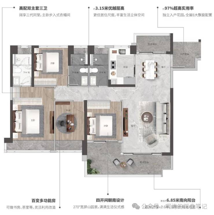 主卧客厅双270°转角,全面屏无际美景