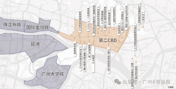以超级CBD规划推动广州国际金融城-黄埔临港经济区迅速崛起,其规模相当于10个珠江新城,承载城市未来发展新动能。