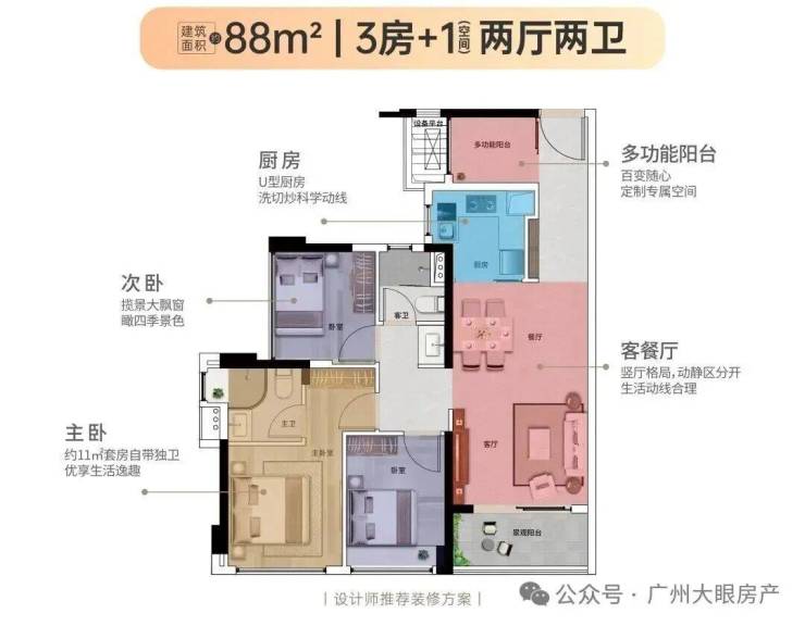 76平做3+1房,88平做带主套的3+1房甚至4房!