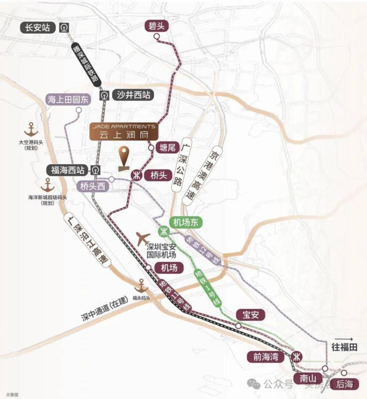 项目近邻桥头地铁站,坐上11号线,5站宝中、7站南山,轨道快线让工作和生活随意转换。