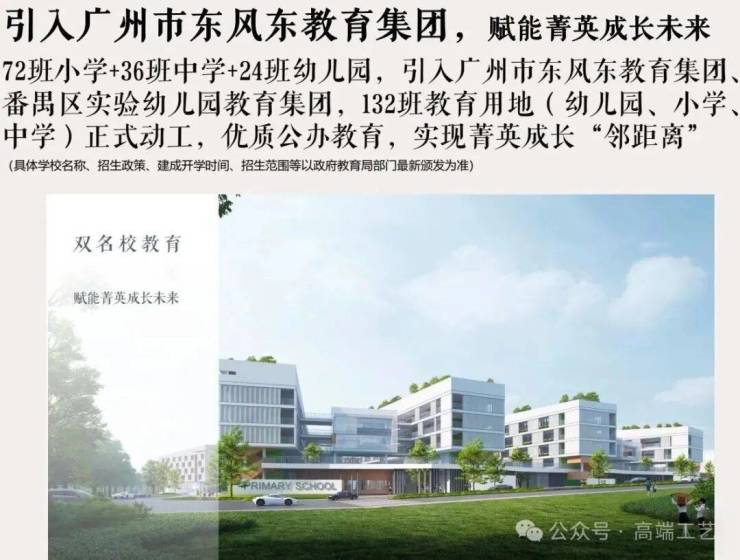 项目核心教育优势,当属配建的 12 年全龄名校教育链。幼儿园为番禺实验幼儿园(省一级),21 班规模,隶属于广州实验教育集团,师资雄厚、设施一流。小学为东风东路小学(万博校区),72 班规模,作为越秀区第一梯队名校,首次跨区建校,与总校共享管理团队和师资,拥有全国督学、全国优秀教师、省特级教师等一流团队。中学为广东广雅中学(万博校区),36 班规模,百年名校底蕴,与总校统一教学体系,中考成绩稳居广州前列。三大名校均已开学,业主网签落户即可入学,实现 “目送式上学”。