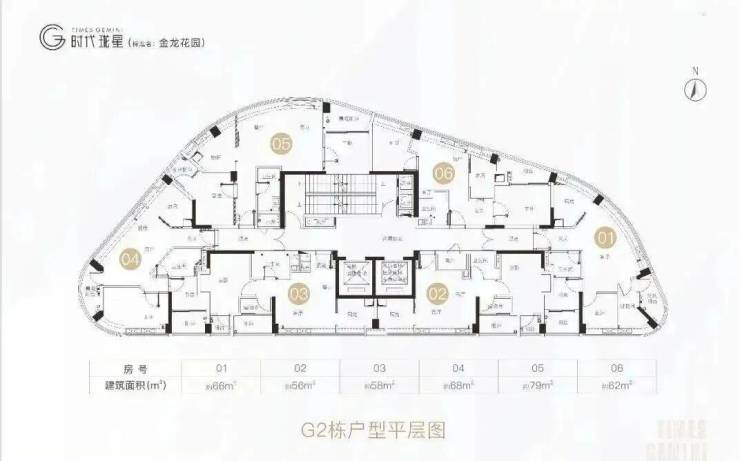 时代珑星共两栋楼,分别是G1栋和G2栋。从外形上看,G1栋算正常,蝶形设计,两梯六户,户型为99-106平三房;G2栋外观略显独特,G2栋推出的面积段为62-79㎡精奢小户住宅。