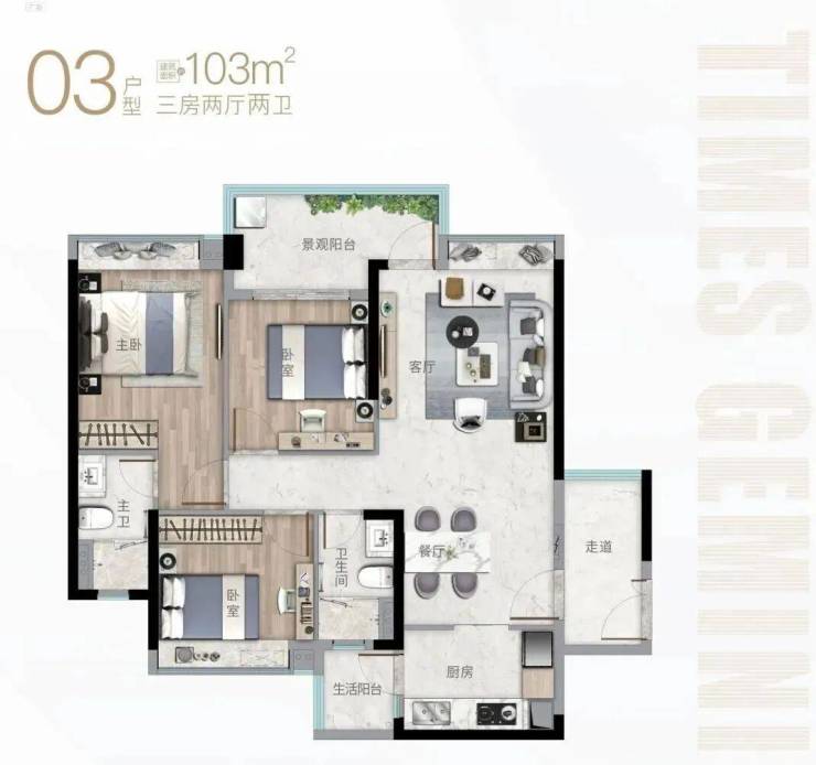 产品:建面约56-107㎡奢装二至三房
