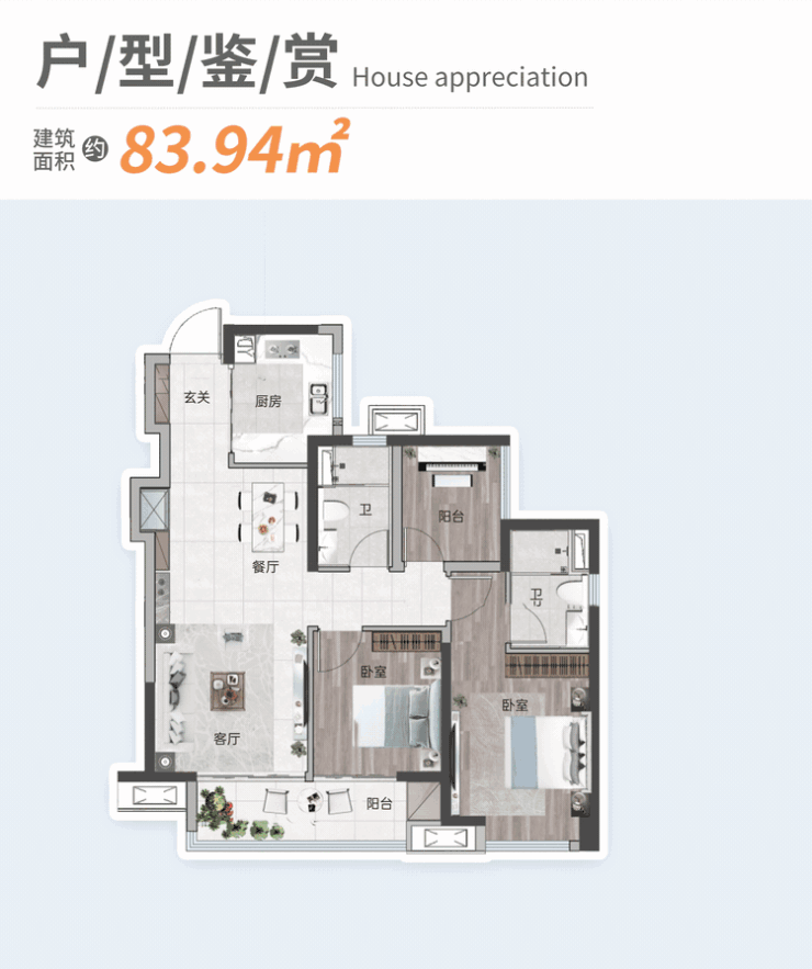 产品:约86-103㎡ 3至4房2厅2卫