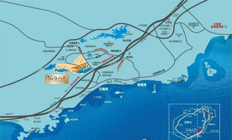 便捷交通:距高铁万宁站约19公里,距神州站仅约4公里;双出口接入海南环岛高速。高速、环岛、高铁、机场多维交通,玩转全岛。