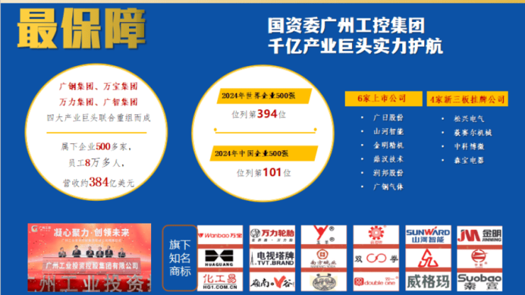 国资委广州工控集团,由广钢集团、万宝集团、万力集团、广智集团四家产业巨头联合组成,广州十大国企之一!旗下企业总数达500多家,员工8万多人,2024年世界500强第394位。