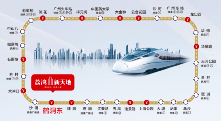 350米广州超级内环枢纽线—11号线鹤洞东站,1号/10号/11号/广佛线四地铁环绕,芳村大道、鹤洞路、环城高速、东新高速无缝串联,15分钟广州南站,20分钟珠江新城。