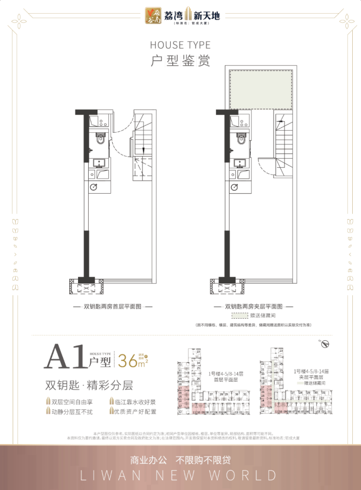 4.5米复式挑高,买一层用两层,高赠送高拓展空间!部分可明火、带阳台、全明房!投资租赁、自用自营、创业办公等,一套全能!