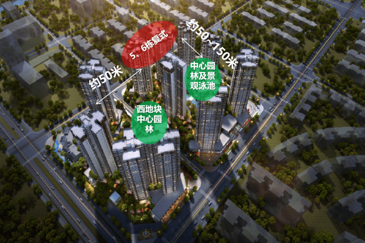 景观属性:四房户型看中心园林及泳池景观,三房户型看西地块园林。