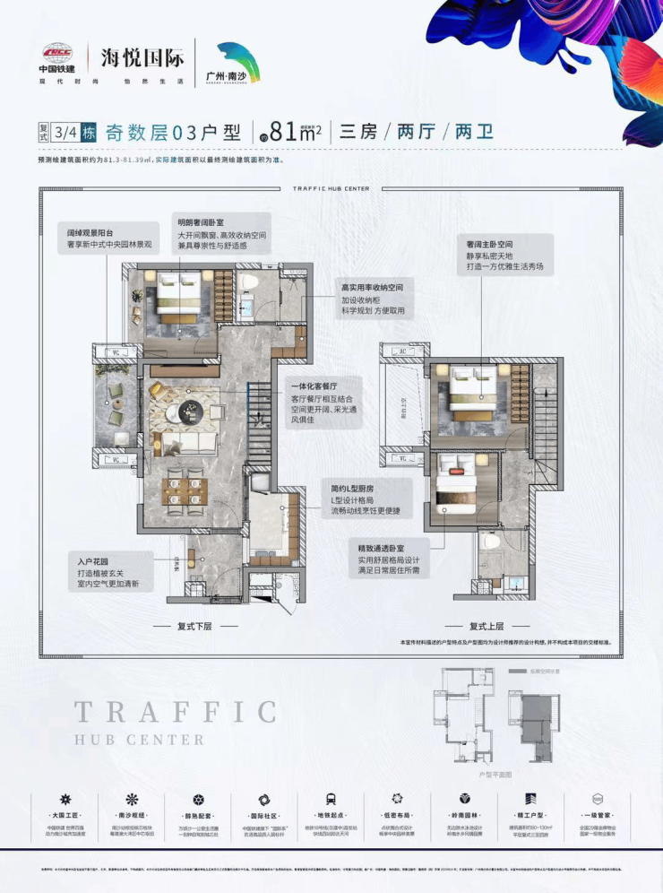 南沙唯一在售咬合式小户复式81-101㎡,高使用率:约85~104%,买一层得两层