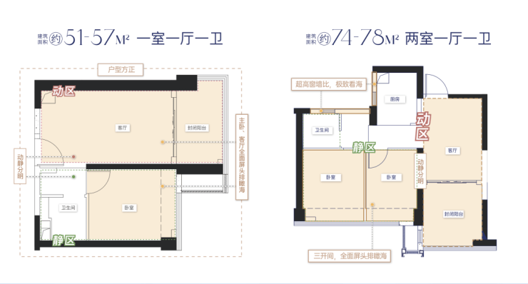 天銮T5打造建筑面积约51-78㎡一至两房小户