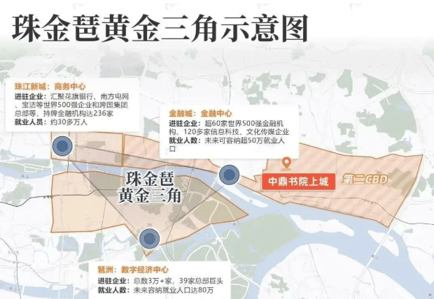 中鼎书院上城珺翎府地处广州第二CBD的核心区域,毗邻金融城、琶洲和珠江新城三大核心辐射区,享有黄金三角红利。项目周边有丰富的产业资源,如智能装备价值创新园起步区、纳米科技研究院等,未来将成为高精尖办公科研人员的重要聚集地。此外,项目所在的老黄埔升级为世界级滨水活力区,进一步提升了区域的发展潜力。