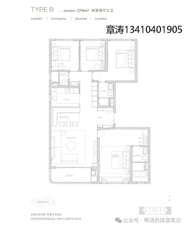 【174㎡户型】独享私家电梯厅-270度环幕观景阳台-高定双套间