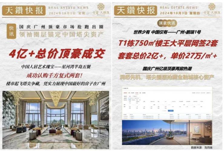 市场数据显示,2026年一季度,广州总价过亿顶豪网签量超过10套,已超越深圳上海,位居全国第一。广州,俨然成为高净值人群资产配置的焦点。广州过亿豪宅的成交量已超过10套。作为顶豪代表的广州鹏瑞1号,一季度的销售表现同样耀眼,其中450平米1508 LONDON版以及约370平米明星户型,目前各自仅剩最后一套单位。
