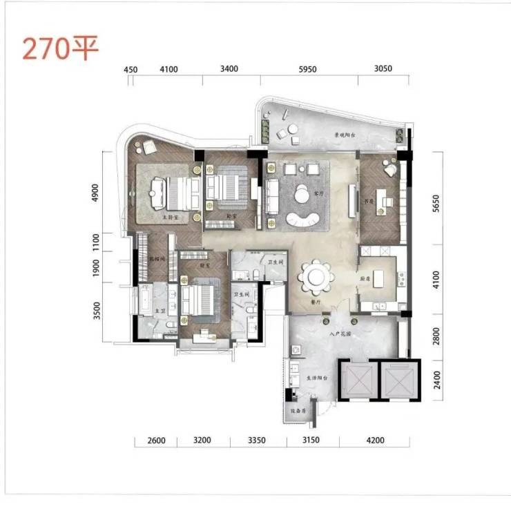 约365㎡5房双套房|2厅|4卫|3阳台+1工人套房