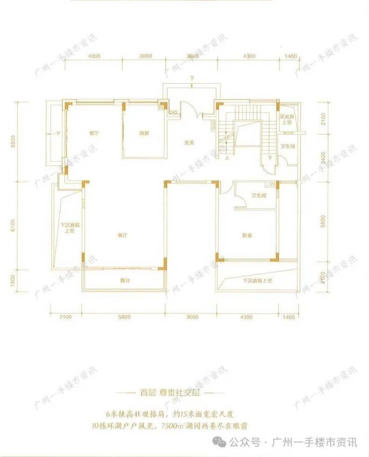 楼王类独栋湖景别墅产品首层拥有超6米挑高的中空客厅,别墅首层还配备了一个套房设计,每一栋类独栋别墅花园面积在120-200㎡不等,可以根据业主不同的需求去打造私家花园或泳池。