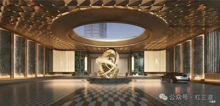 · 对标星级酒店标准,定制双动线精装公区,人行则艺术门厅进入首层挑高大堂,地下车库则以豪宅标配星空顶,景观地下光厅设计,打造步步生辉的入户空间。
