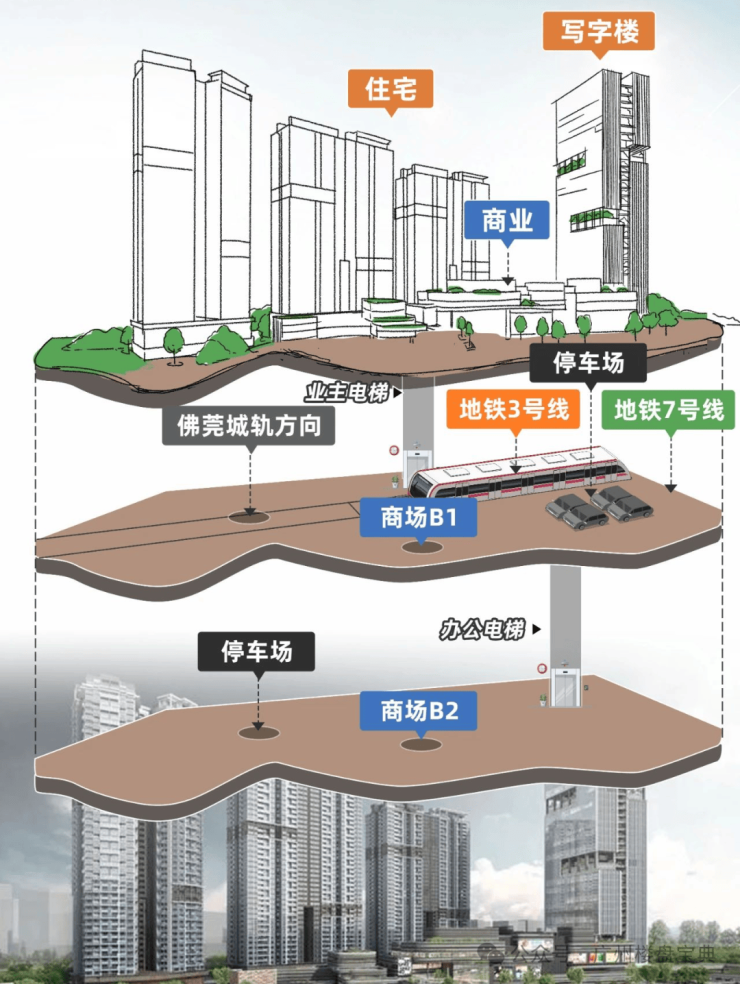 项目为“真地铁上盖”物业,紧邻地铁3号线、7号线汉溪长隆站及佛莞城际轨道,30分钟直达珠江新城、广州南站及白云机场。周边主干道环绕,包括番禺大道、南大干线、汉溪大道等,15分钟通达珠江新城,45分钟辐射湾区核心城市。四层立体交通设计(地下连廊+电梯入户)实现风雨无阻归家。
