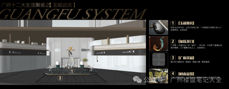 ,融入广雕、千年广绣、广府花窗设计,如广雕对景照壁源于余荫山房抽象龟纹石雕,寓长寿之意、镇宅安宁;广府花窗,寓意满堂富贵等,代表广府的美好祝愿
