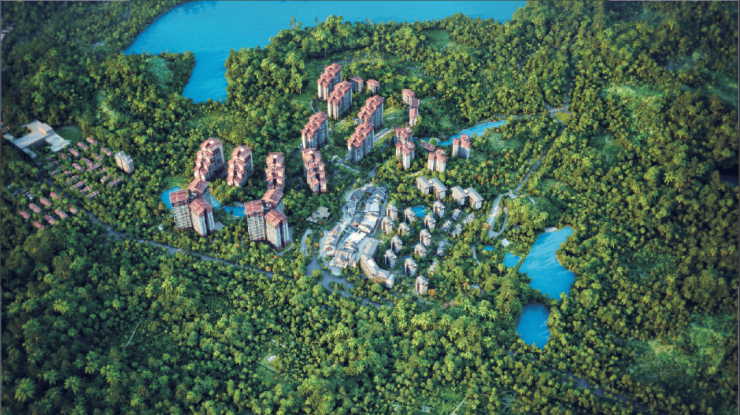 整个区域由一轴、两廊、三大空间构筑而成,打造野奢生活、野奢休闲、野奢游览三大立体组合生活空间,涵盖花园洋房、湖景公寓、温泉酒店、养生会所、沿湖风情商业街、热带雨林野奢世界旅游度假景区等综合业态配套。项目以约2000亩超级体量雨林生活开发建设,成为海南热带雨林“永久不再开发”政策体系下独树一帜的健康资源聚集地。
