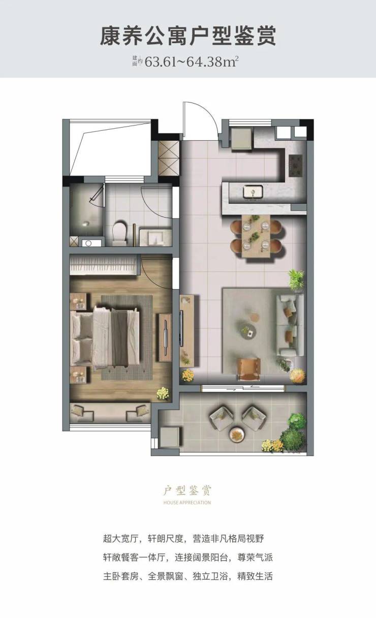 康养配套: 健康管理中心、社区医疗中心、长者学院、养生堂药店、约800㎡修养空间、约12亩天然水域湖泊等,每一处细节的用心,皆为业主居住得更舒心。