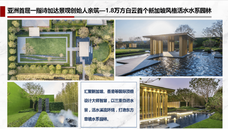 项目属于纯改善型,小区园林是其核心卖点之一,由新加坡标杆园林设计公司诗佳达打造,由世界顶级景观设计公司——CICADA景观设计事务所设计!