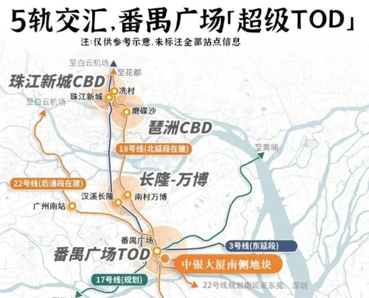 【都会配套:五维生活圈重构城市理想】交通维度:项目直驳番禺广场地铁站E口,坐拥3号线、18号线、22号线三轨交汇优势,17号线(规划中)更将打通湾区动脉。以项目为圆心,形成15分钟抵达广州南站、30分钟直达珠江新城的时空圈。