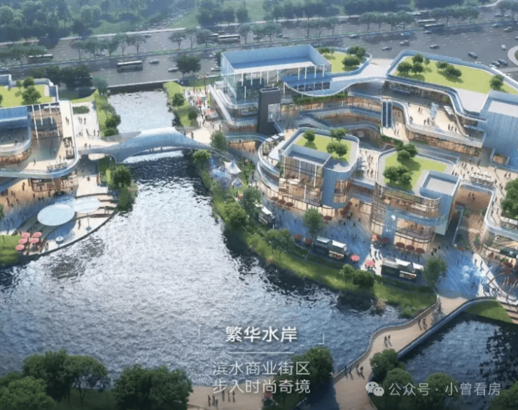 商业方面,小区自带4万㎡的滨水商业,设计风格偏休闲,以后楼下就能满足日常购物、喝咖啡的需求。