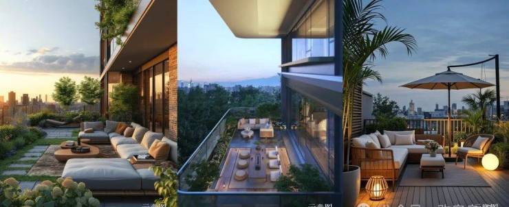 主城唯一南北双庭院体系,最大公共空间面积约60㎡,庭院净高6-6.3米,30%阳台占比+10%不计容公共平台,真正实现层层有庭院、户户有花园。