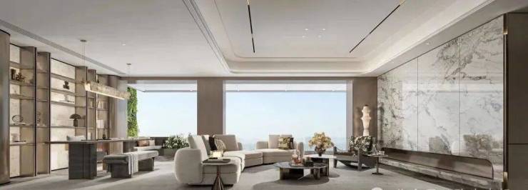 · 对标星级酒店标准,定制双动线精装公区,人行则艺术门厅进入首层挑高大堂,地下车库则以豪宅标配星空顶,景观地下光厅设计,打造步步生辉的入户空间。