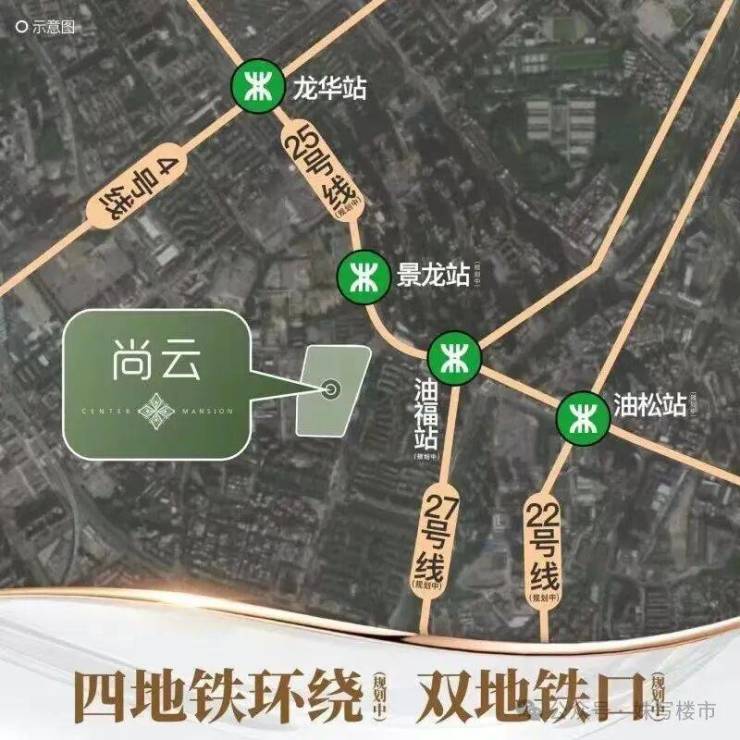楼盘位于龙华中心区,工业路与人民路交汇处,现最近的地铁为4号线龙华站,步行约1.2km;25号线(建设中)景龙站约400米,27号线(建设中)油福站约500米,22号线油松站1000米。