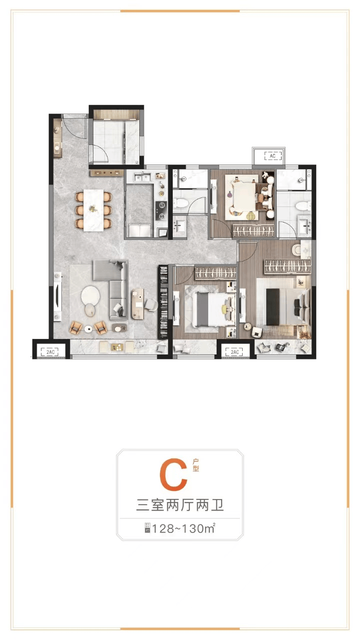 128㎡—4+1室2厅2卫(5.4米大宽厅)
