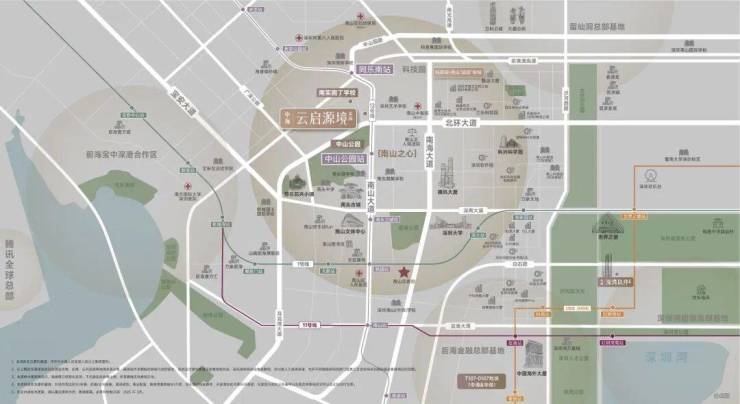 🔗科技园高知圈层聚集地——都心效率:项目立于科技园之上,与豪方天际花园、前海东岸构成纯粹高知的百万方社区氛围,焕新都心醇熟界面;以项目为圆心构建约三公里通勤圈,回应科技园精英家庭职住平衡的生活需求。(以中海云启源境为起点,以爱普生大厦为终点,百度地图测算步行距离约在三公里以内)