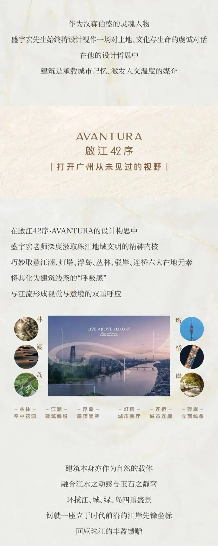 啟江42序·AVANTURA凝聚全球顶级设计团队,以“现代海派审美”,构建垂直多元社交场域;以“逐新生活品味”,集萃国际艺术灵感,共筑啟发时代审美的先锋作品。