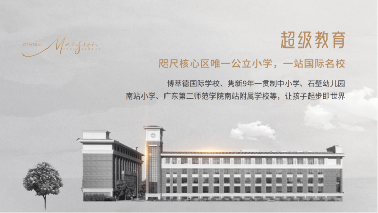 项目周边教育资源丰富,有石一幼儿园、石壁小学、南站小学、广东第二师范学院南站附属学校、会江实验学校等。此外,新世界集团与周大福教育集团强强联合打造 12 万平米英国著名的博萃德学校,为孩子提供与国际接轨的优质教育,匹配精英高度,让区域教育价值再度升级,孩子在家门口就能享受多元化、高品质的教育服务。