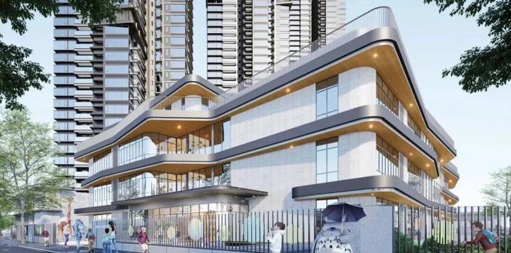 东一、东二地块是住宅,规划 5 栋 45 层超高层、1所幼儿园和托儿所。