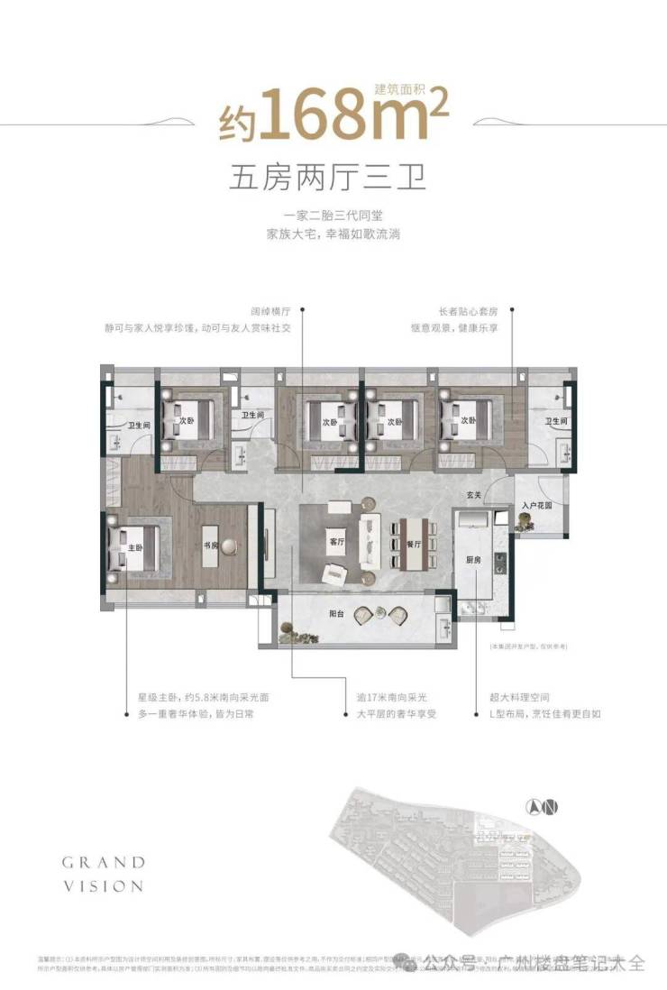 (建面约168㎡五房三卫实拍图)