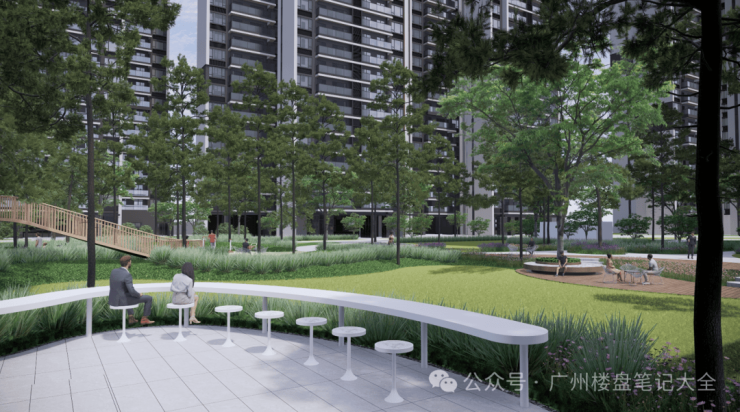 中心花园:巧妙运用高低的分差手法隔离空间,打造半围合式空间,让生活与美景共存。
