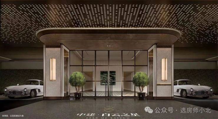 . 礼序归家:定制5色幻彩釉面陶板;对标星级酒店,打造高度约 9.5 米奢石大堂;星空顶车库,风雨连廊归家系统。