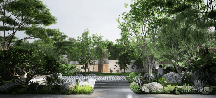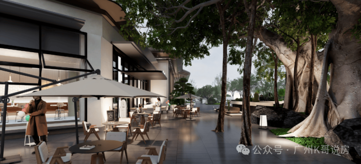 大门处保留百年榕树,打造休闲空间“榕悦广场”,休闲社交超自在!